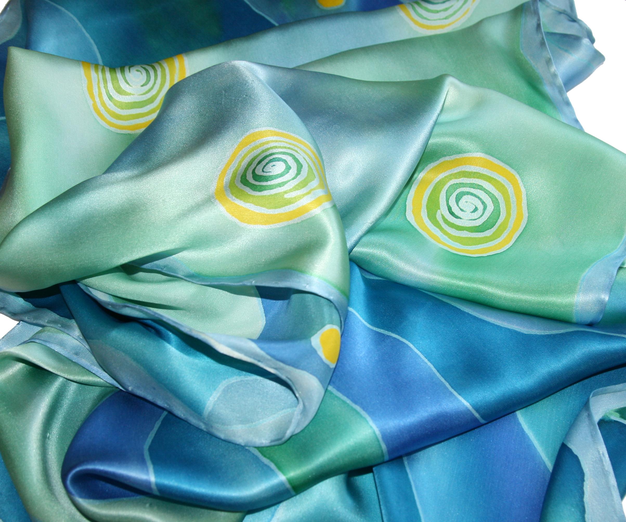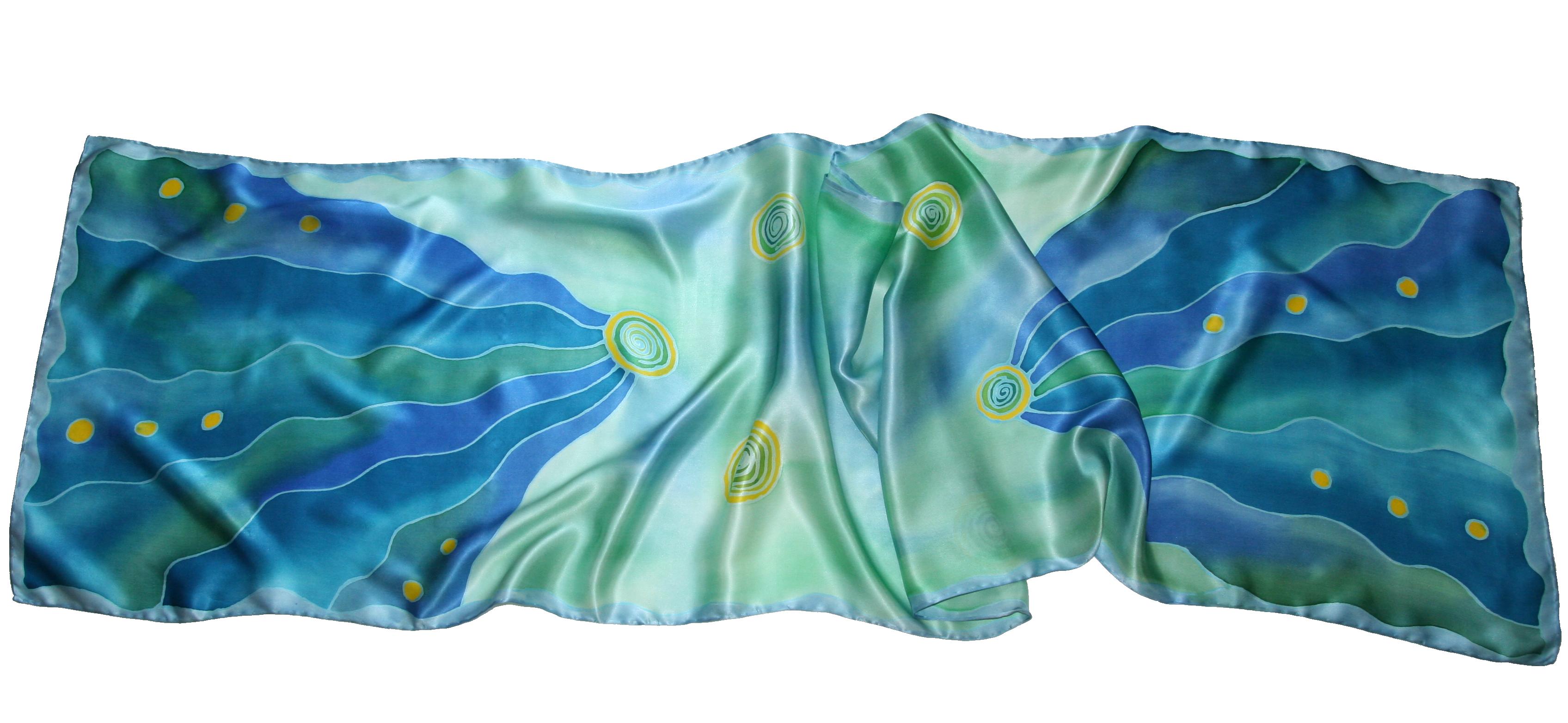 Úvod » Šátky a šály » Tajemství laguny - hedvábná šála ručně malovaná