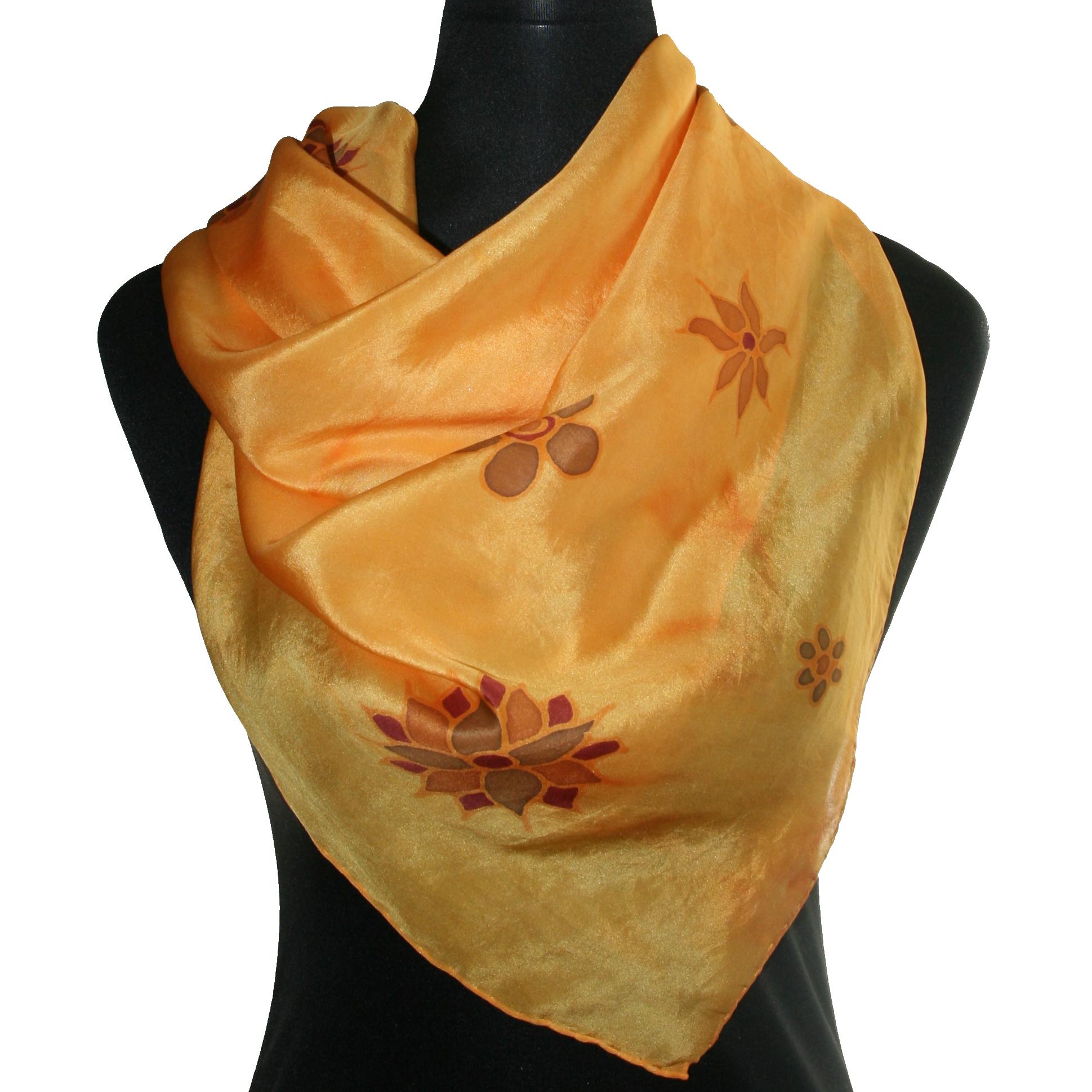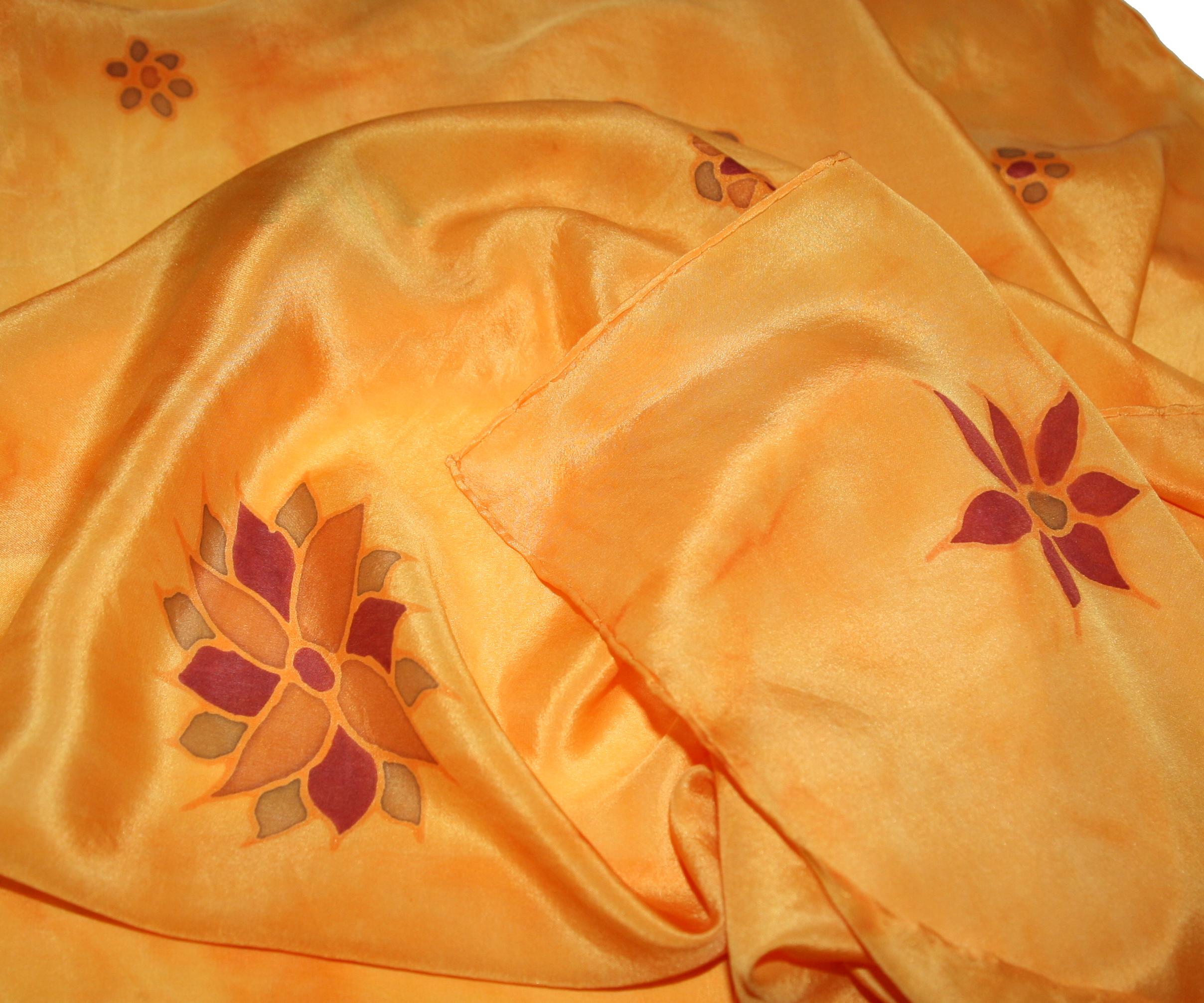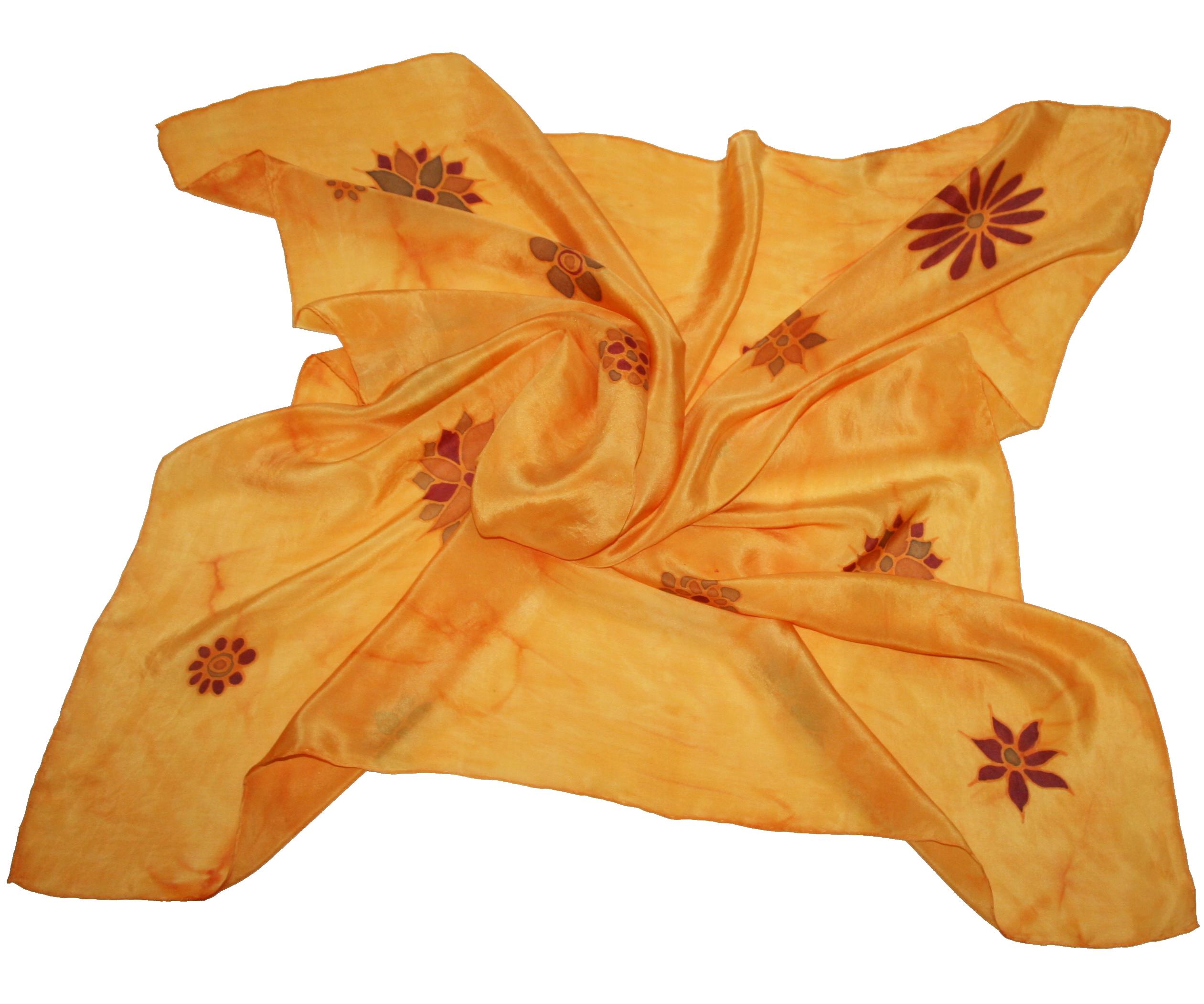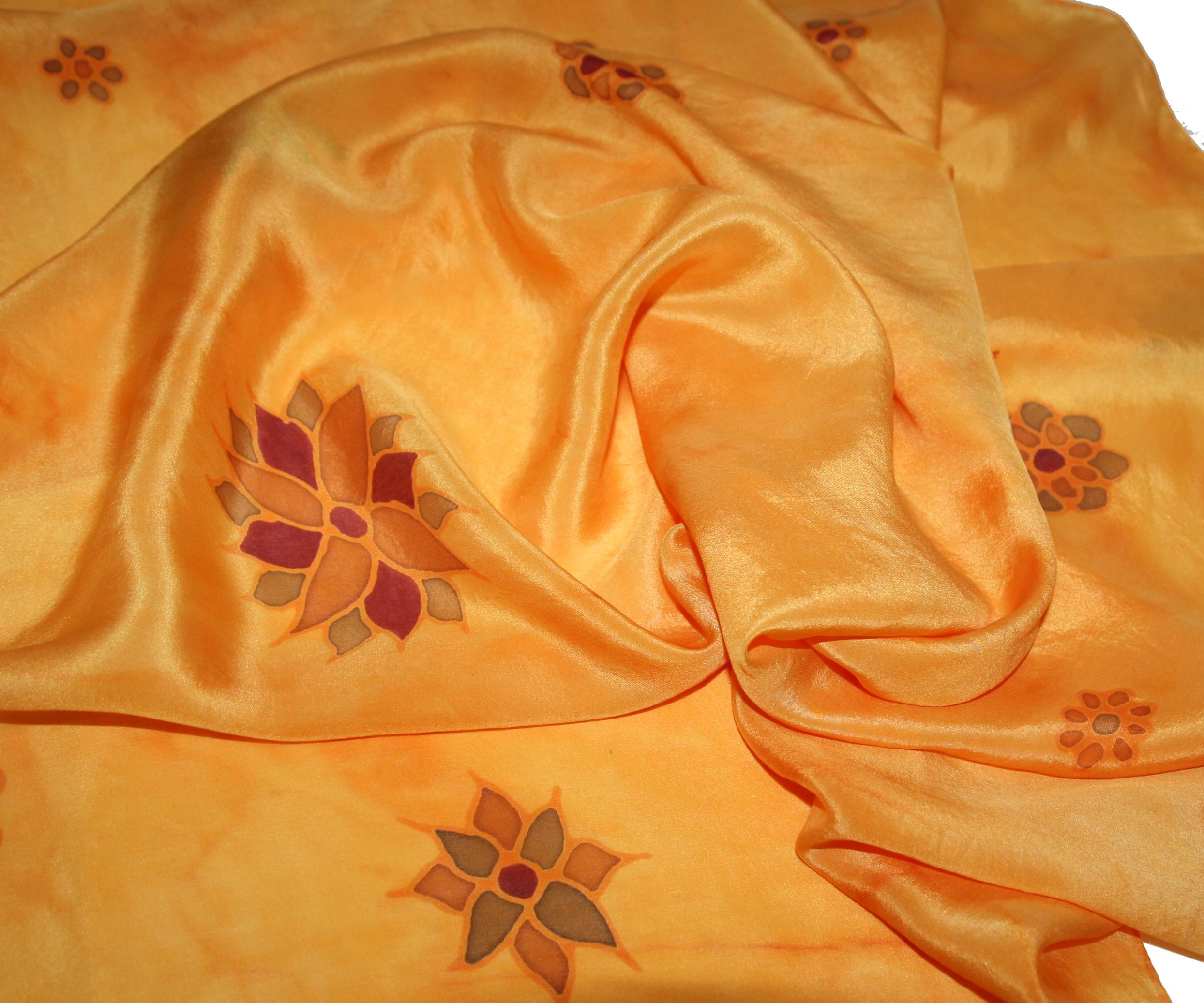 Ručně malovaný hedvábný šátek v odstínech oranžové